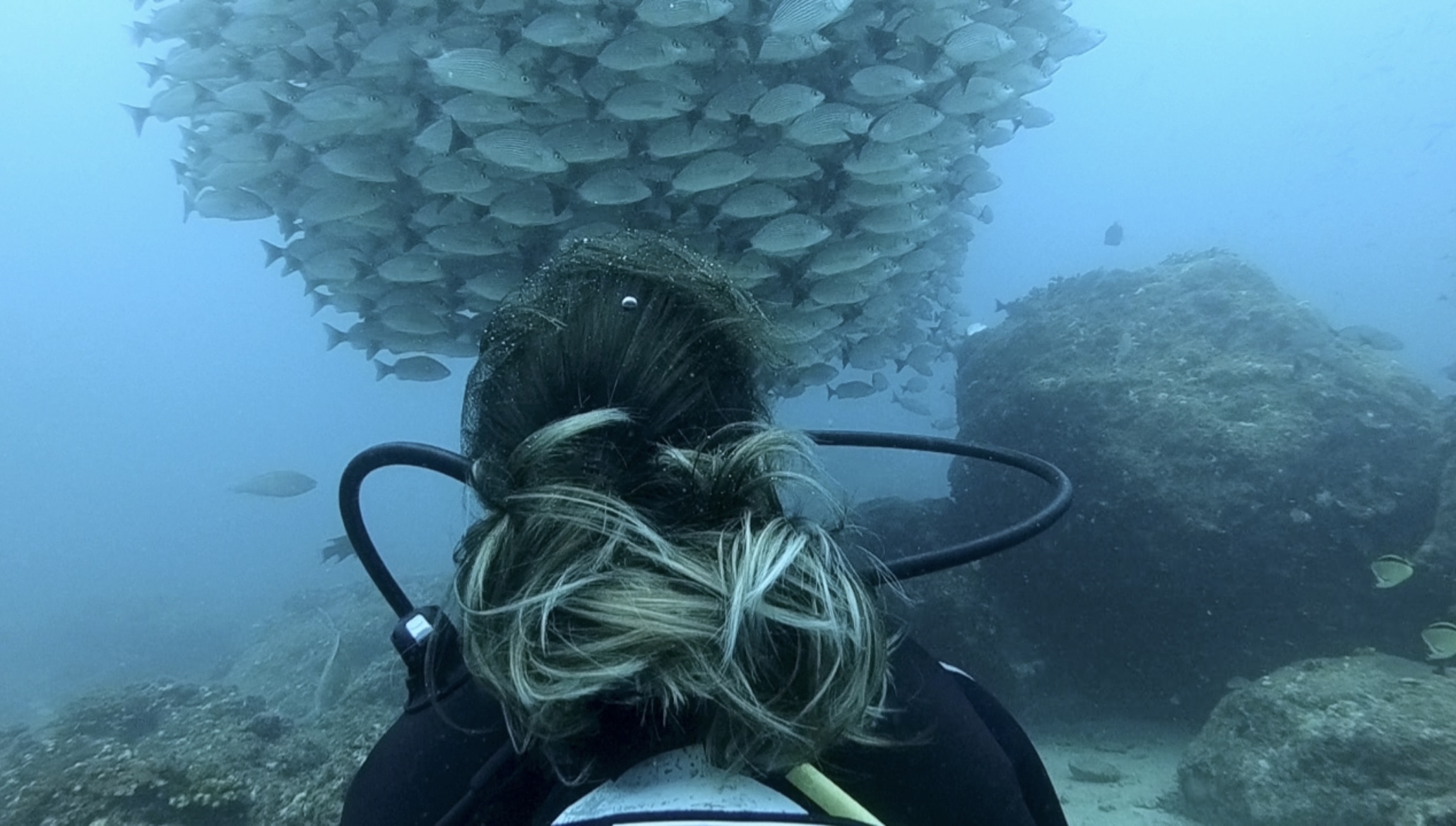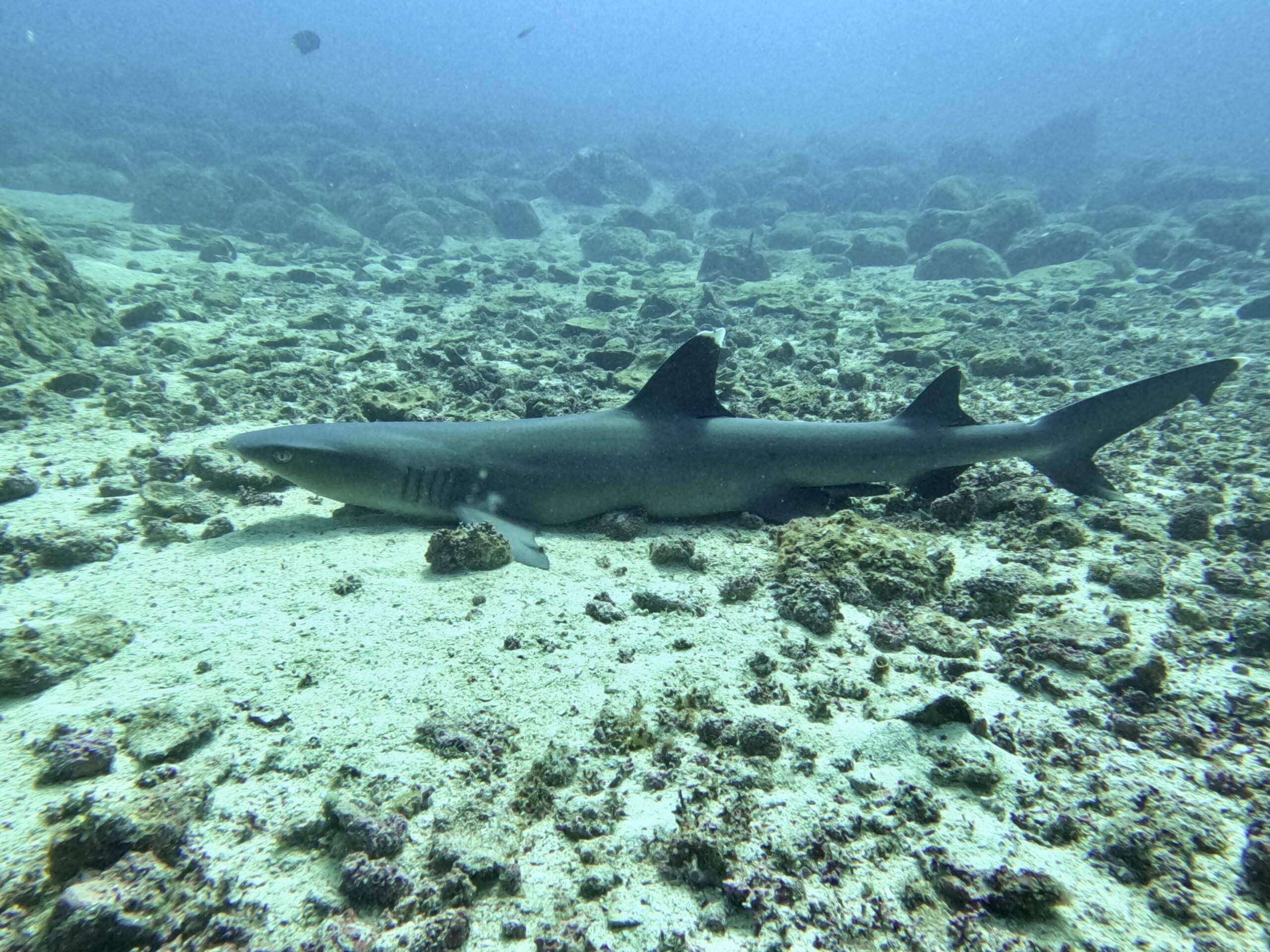 Buffet lives up to its name—this site is an all-you-can-see feast of marine life and one of the true highlights of Coiba. The descent along the buoy line brings you to 13 m, where the reef begins and extends revealing a landscape of rocky formations buzzing with activity. As you explore these structures, you’re likely to encounter small groups of whitetip reef sharks resting in the sand, moray eels tucked into crevices, and sleek schools of barracuda cruising by. Various species of jacks weave through the scene, and the final cluster of rocks often feels like a chaotic underwater arena—bursting with color, movement, and countless fish interactions. With a bit of luck, bluefin trevallies or whitetip sharks may swoop in to hunt, creating moments of pure 4 excitement. And just when you think Buffet couldn’t offer more, manta rays or even whale sharks sometimes glide through, adding a touch of magic.