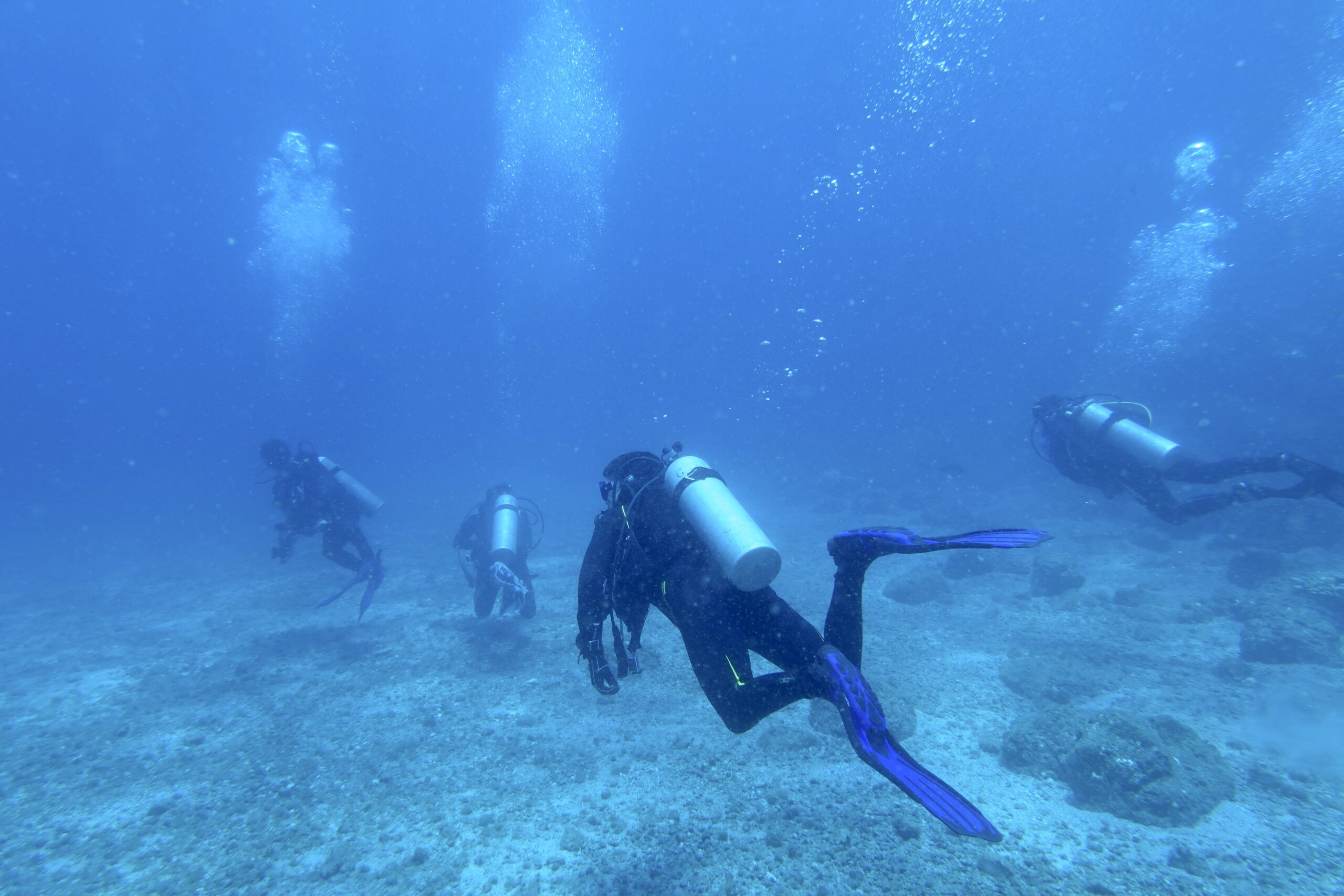 Punta Deseo—“Wish Point”—often lives up to its name, delivering exactly the kind of encounters divers hope for. The dive begins in a sandy area at about 6–7 meters, an ideal depth for Discover Scuba Divers and Open Water students exploring the shallow reef. Certified and more experienced divers can continue down to 18 meters, where the reef becomes richer and the marine life more active. In this first section, it’s common to see sharks resting in the sand and turtles grazing along the reef, completely unbothered by our presence. The atmosphere is calm and full of subtle marine life moments. Crossing a long stretch of flat sand brings us to the second part of the site—a deeper rock formation reaching 22 meters. When currents are favorable, plankton gathers here, transforming the area into a feeding zone where, if you’re lucky, whale sharks may appear for a quick snack.